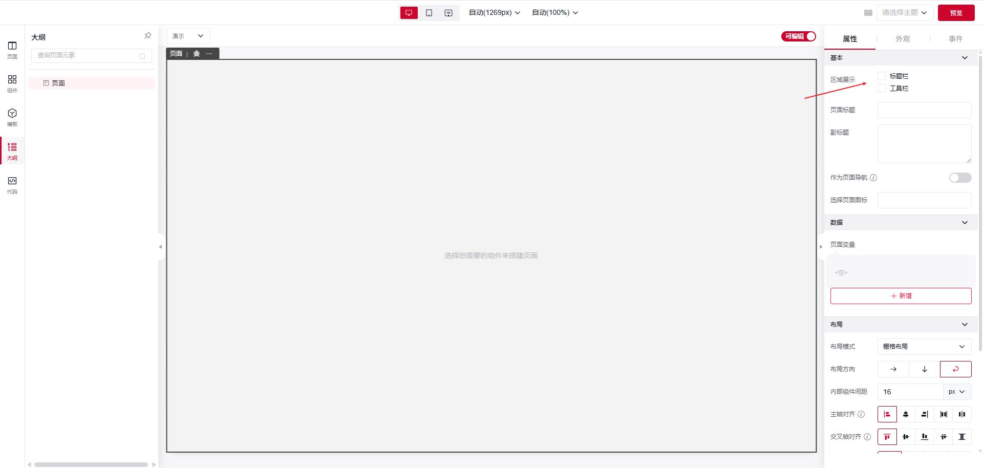 - 页面变量:使用前请在页面数据中先定义变量名称与类型。