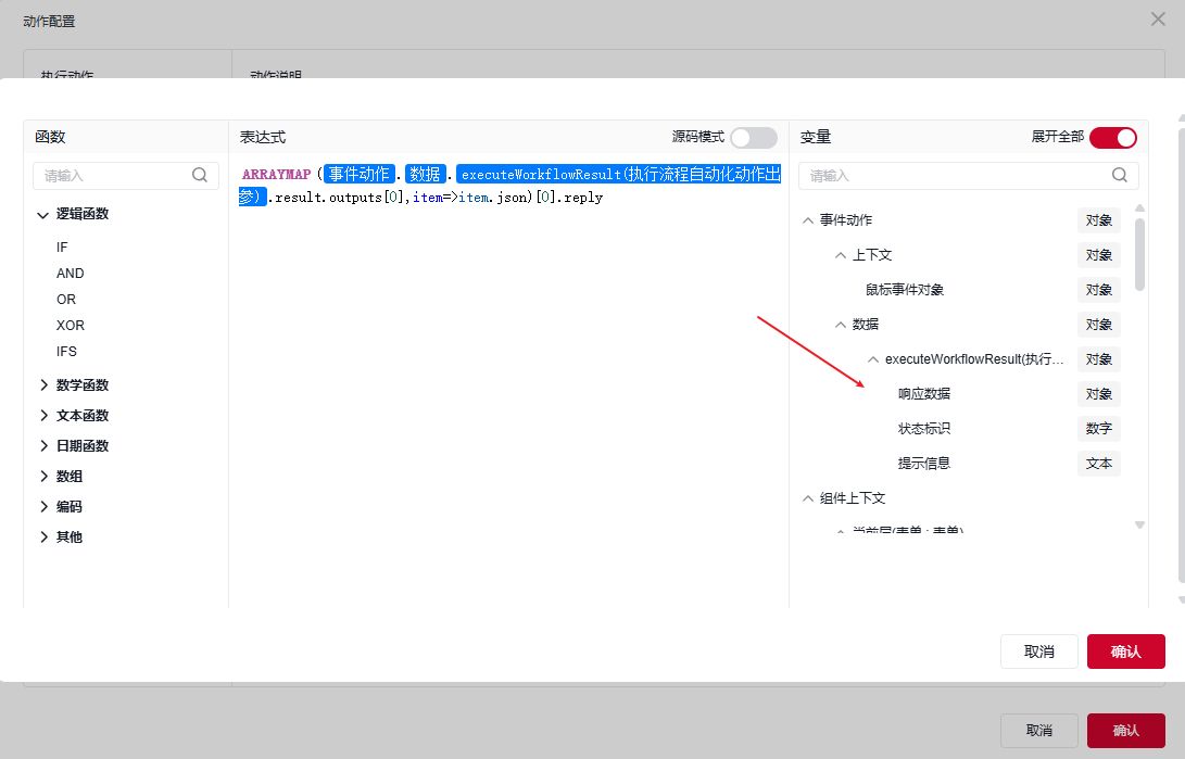 - 添加动作节点:JS代码 1、处理模型返回数据